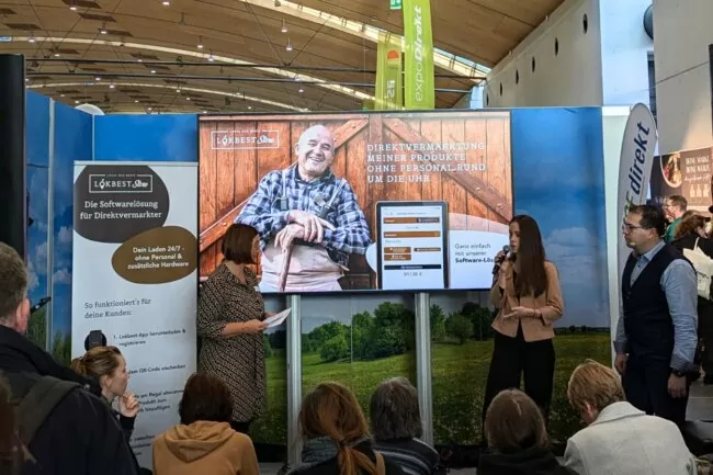 Nach einigen Diebstählen im SB-Laden entschloss sich Sascha Mathis vom Hofladen Kraut & Rüben im Herbst 2023 für die Integration der Lokbest Store Softwarelösung. Bereits im Mai 2024 folgte dann ein 2. Hofladen mit dem System. Auf der expoDirekt berichtete Sascha nun, welchen Mehrwert die Softwarelösung mit sich bringt und sagt ganz klar: Durch die bargeldlose Zahlung per App & die Zutrittskontrolle ist das Thema Diebstahl Schnee von gestern!